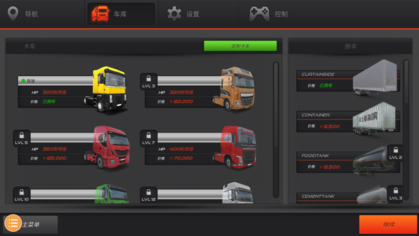 3、玩家需要根据任务中货物的特性,选择不同的卡车和挂车,以及不同的行车路线。
