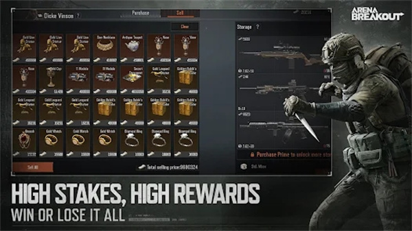 2、玩家将自己带出的战利品可以存储在游戏仓库中,又可以出售用以换取游戏的金钱。