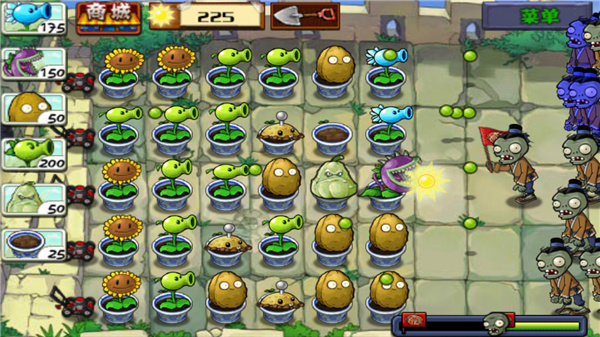 植物大战僵尸长城版是一款卡通画风的休闲塔防类游戏,玩家在游戏中选择不同的植物进行配置,消灭源源不断的僵尸。丰富的植物类型其中向日葵可以稳定产出阳光,豌豆射手可以持续对僵尸射出子弹,玩家还可以携带火爆辣椒、樱桃炸弹等强大植物,可以直接秒杀各种僵尸。