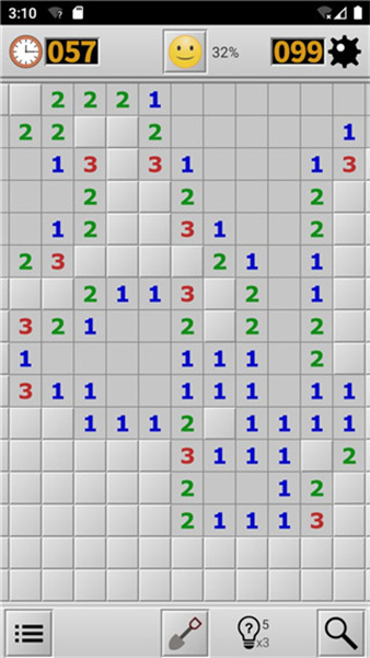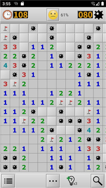 2、当数字显示周围有多少个地雷时,玩家能根据这些提示进行推理标记附近地雷。