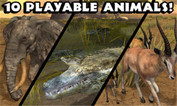 终极草原模拟器是一款以草原为场景设计的模拟生存类游戏。游戏的场景设定在了非洲的大草原,玩家可以选择在草原上生活的一种野生动物,展开模拟生存的玩法。游戏中可供选择的动物是丰富多样的,包括有猎豹,鬣狗,羚羊,犀牛,斑马,大象,河马,鳄鱼,秃鹰等不同类型,玩家可以自由选择在草原中探索。每一种动物玩家都可以使用移动、进攻的按键来进行控制,真实的物理引擎使得野兽之间的战斗非常爽快。