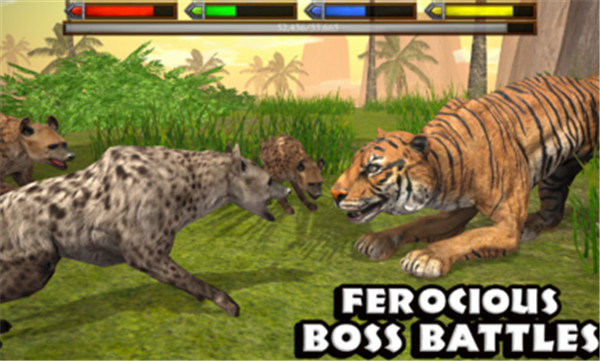 1、玩家能够自由探险丛林和草原,遇到各种各样的动物,发现猎物伸开你的爪子补货。