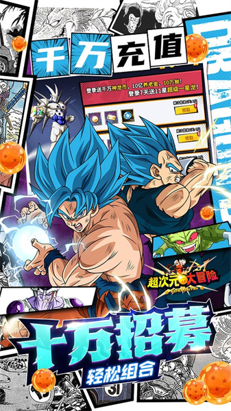超次元大冒险是一款以龙珠为主题的冒险养成类游戏。游戏以鸟山明知名漫画《龙珠》正版ip授权,玩家可以在游戏中获取到众多龙珠中出现的角色,并且加以培养。玩家可以带领角色参加天下第一武道会、赛亚人变身、召唤神龙等不同的玩法,角色包括有小悟空、克林、天津饭、饺子等原著漫画中出现过的知名角色,角色可以升级、进化、突破,使用的技能形态也是还原原著。