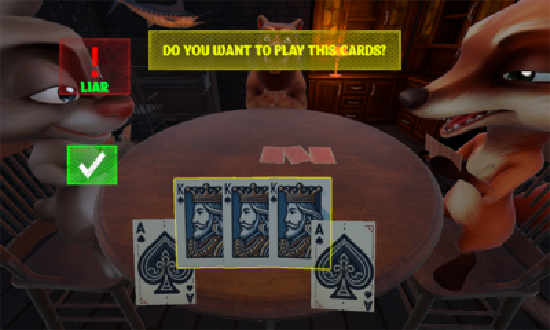 骗子酒馆手机版是一款由Steam游戏进行移植打造的手游,游戏当中讲述了四个动物在酒馆当中进行猜牌玩法,玩家可以选择任意一个角色进行扮演,去通过策略的说法进行骗过对方,将手中的牌打完或者其他动物被淘汰即可获得游戏的胜利。根据游戏的设定能够对那些撒谎或者做出错误预测的用户们进行惩罚,完成相对应的游戏任务后游戏就会结束。