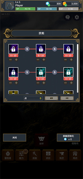 4、点击技能界面,可以在这里加点冒险者的技能加点。
