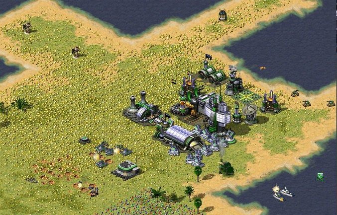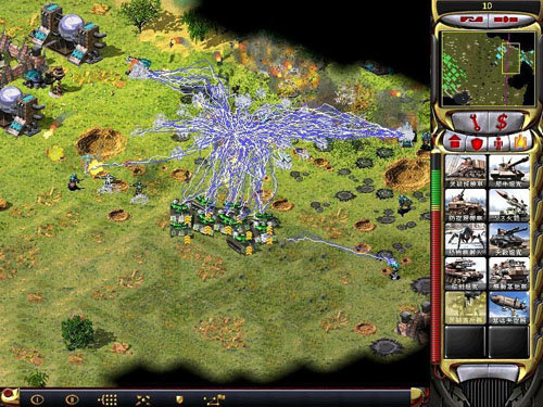地上充满黄金的地图,占领中间的科技机场,拥有无限的电力和快速成长的金钱,苏军的磁暴线圈和联盟军的防空炮也是绝门武器,攻击范围大,攻击力也大幅增强。