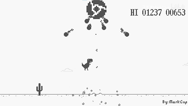 谷歌小恐龙是一款以小恐龙为主角的横版冒险闯关游戏,玩家在游戏中扮演一只黑白、像素画风的小恐龙,为了找到自己的食物,开始了横版平台之间的闯关。游戏中的画风简洁,以黑白的线条勾勒出了不同平台、机关的系统,但是丝毫没有影响游戏的可玩度。丰富的陷阱、障碍物,让你跑酷的时候需要集中精神,如果碰撞到障碍物了,小恐龙就会游戏失败,重新开始。