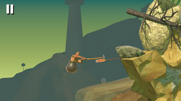 3、它的操作和角色动作非常的魔性,凭借一把锄头在各种悬崖墙壁中接力弹跳。