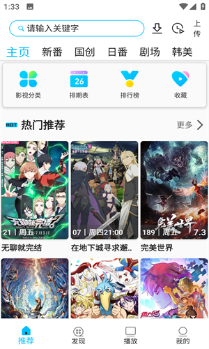 3、全新上线升级的智能动漫推荐板块,漫友每天都可以在推荐上看到不同的动漫番剧。