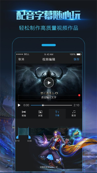 3、剪辑,字幕,配音随意编辑,多段、图片无缝集合海量特色视频贴图效果。