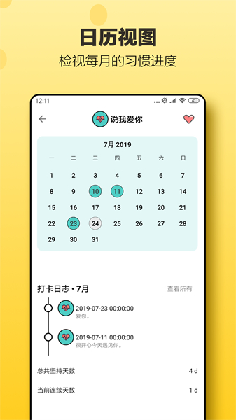 1、网友能够通过打卡留存自己日常的点滴,让大家能在每个平凡的日子里见证自身成长。