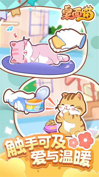 3、养成,爱宠人士可以给猫咪喂食、洗漫、梳毛等,照顾猫咪的桌面日常生活。