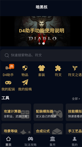 暗黑核软件是一款专为暗黑破坏神游戏打造的游戏助手软件。软件能够不断为玩家更新最新的游戏资讯,玩家在这里能够了解游戏的最新改动。这里有着详细的游戏数据库,玩家在这能够查看游戏装备、技能、任务等信息,掌握游戏详细信息。活跃的游戏社区板块,玩家在这能够随时发帖分享自己的游戏心得,从而结识更多兴趣相投的好友。