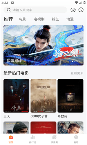 1、不知道看什么时候还能在搜索栏中输入关键词来寻找,为观众精准提供想看的影片