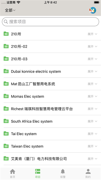 1、清晰的项目列表,所有的项目都排列到了项目列表中,能够看到每一个项目名称。