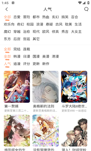 3、漫画阅读界面直观,易于操作,能轻松浏览、搜索和阅读漫画,提供流畅漫画体验。