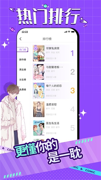 1、会实时更新提供各类漫画排行榜,让二次元了解欣赏最受欢迎的漫画作品。