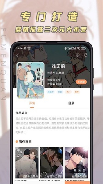 腐门道拥有海量耽美漫画和耽美小说,热门耽美题材每日实时更新,总能找到你喜欢的耽美读物。全部资源免费阅读,各种同人作品都可在这里免费观看。软件提供良好的交流社区,分享各种优质内容,发现宝藏漫画或小说,进行同好交友。