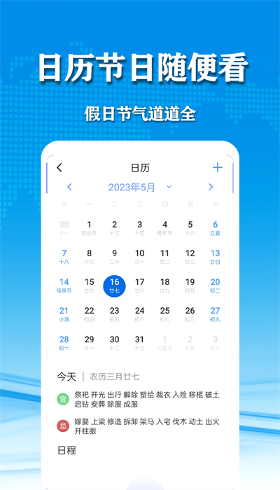 在多个城市之间快速浏览,只需点击即可快速预览出差、旅游、家庭所在城市的天气信息。