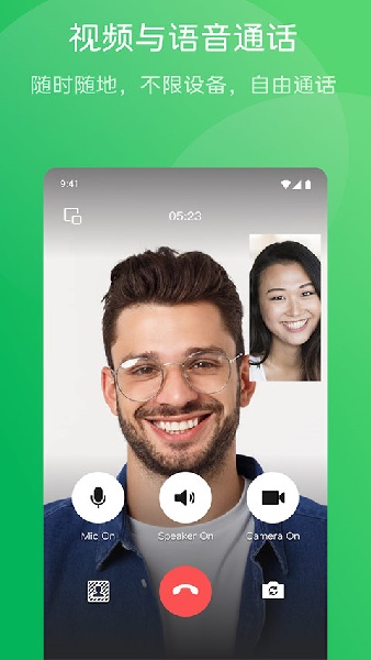 2、无论身在何处,都能享受高质量语音和视频通话,最大9人同时通话。