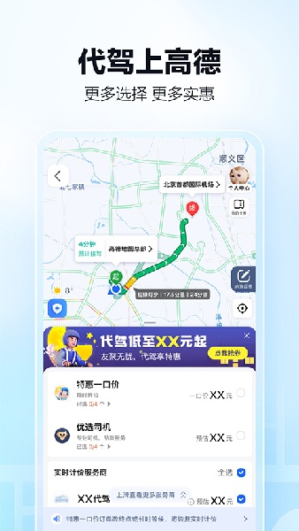 3、提供含驾车、打车、步行等多种导航方式,实现更精准的顺风车订单。