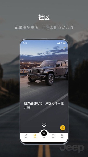 Jeep致力于服务追求自由与探索的车主,您提供全路况的专业越野体验,畅享更高效的吉普车辆智能服务,享受更便利的出行选择,与其他吉普车友交流,获得更丰富的社群生活,享受精彩的冒险体验。
