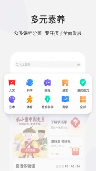 学而思网校覆盖了从小学到高中的所有学科,除此之外还提供了编程、人文、历史、科学、艺术等素质类课程,帮助学生进行全方位的发展,让每个孩子在线学习变得更加有效。