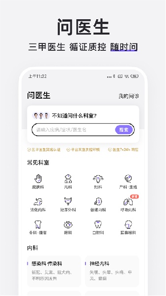 2、覆盖妇科、儿科、皮肤科等各领域三甲名医,全天候在线坐诊,提供在线咨询。