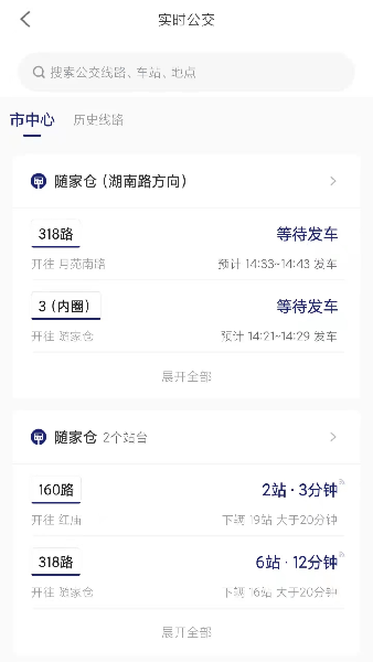 1、输入公交线路或站点名称,准确告知您欲乘坐公交前位置、发车时间及到站时间。