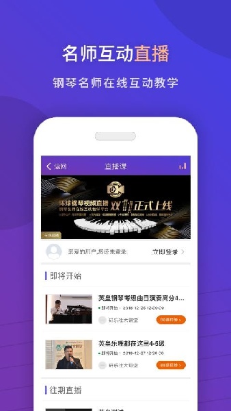 1、提供的所有钢琴互动直播课程都可以支持在线回放,方便学生观看精进技术。