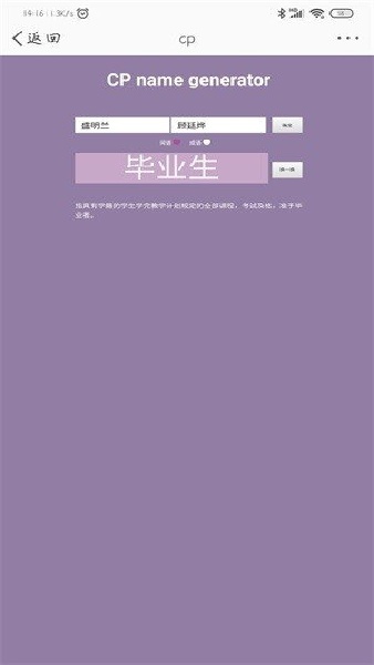 2、可以根据需要输入想要制作CP名的人的姓名,软件会自行生成匹配的CP名。