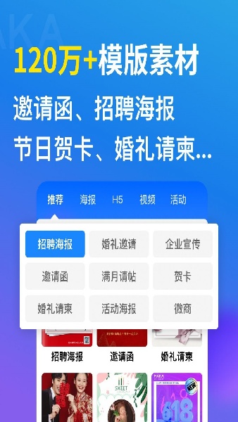 3、海报功能适合企业用户在制作节日祝福海报、邀请卡、公众号、微商朋友圈的广告。