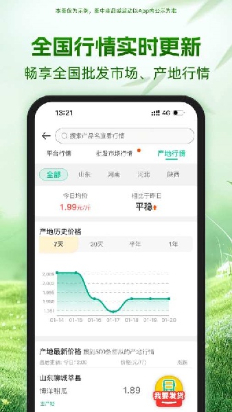 2、软件提供了农产品批发买卖服务平台,为农民经营者提供高品质的农业产品。