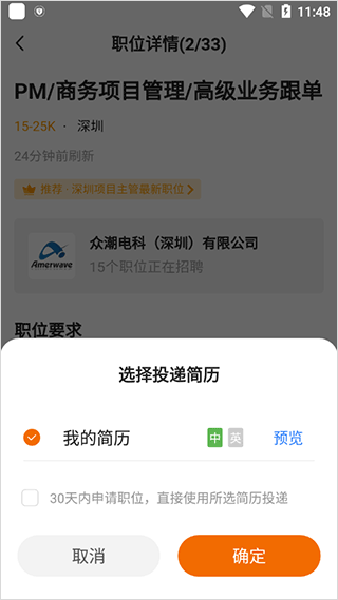 3、智能推荐好职位,根据简历、搜索习惯等为求职者推荐合适的职位。
