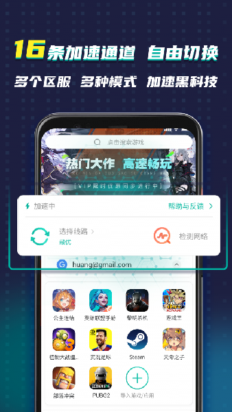2、实现各种游戏的加速,外服游戏也不用担心,可给玩家带来优秀的游戏体验。