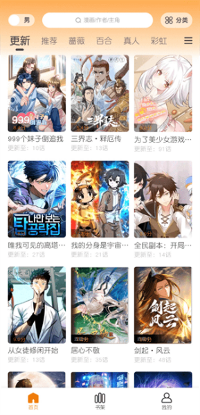 1、打开并打开绘梦轩漫画app后,选性别和漫画题材。