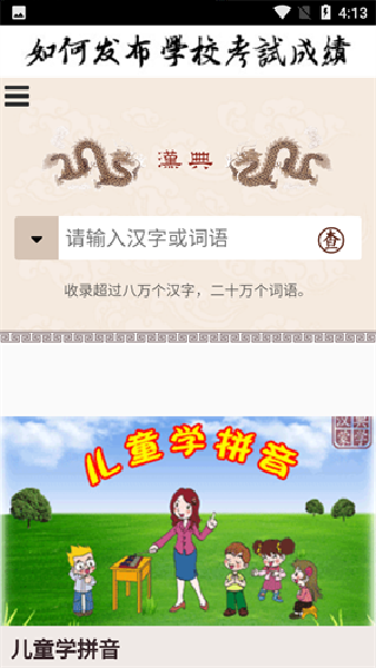 汉典网专注于汉语学习的软件,学习语文知识时,不认识的汉字、词语、成语等等都可以查询,且每一个字词的含义均取自国内权威单靠文献,是学习汉语、了解中华文化的必备软件,了解汉字的传承。