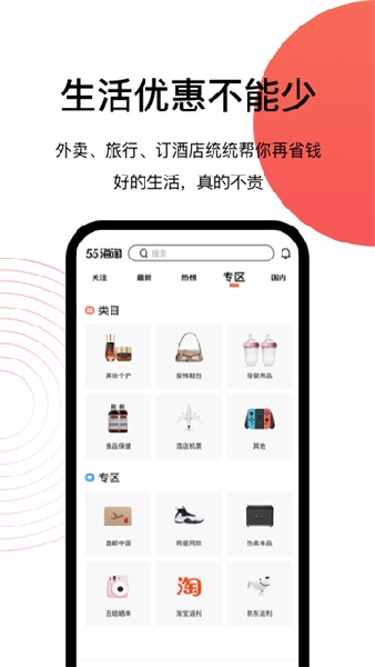 55海淘是一款为国内消费者提供全方位海外购物服务的海淘软件,资讯和网页版同源,提供24小时全球优惠推送,成为国内领先的海外购物返利平台,随时掌握全球折扣信息,下单还有高额返利,为国内千万海淘购物者提供贴心的服务,入驻多家电商平台,淘宝、天猫、京东等,海淘返利,省力更省钱,用更优惠的价格买到更好的东西。