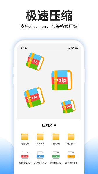 压缩文件查看器是一款查看手机压缩文件的文件管理软件,可以免费使用,不仅支持解压,还能支持压缩,将大型文件压缩可以节省内存空间,同时在传输的时候也会更快,提高了效率,使用这款软件来轻松压缩zip,rar以及7z等文件格式,轻松一键压缩,并且还可以加密压缩,进一步保护使用者的隐私与安全,软件的解压速度也很快,轻松查看其中的内容,帮助使用者轻松管理空间。