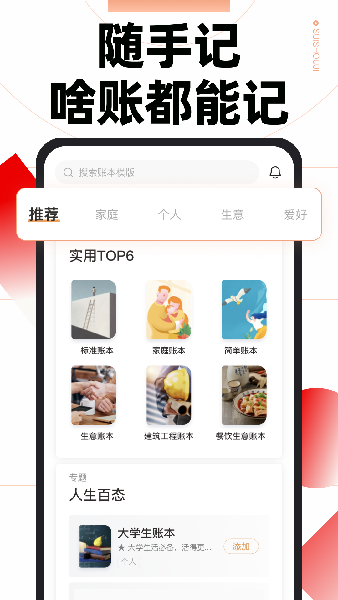 随手记是一款提供手机记账、预算控制、多种报表服务的手机记账软件,提升手机记账使用体验,来各种记账功能,并且都是免费提供给使用者,就算是新手也能快速上手使用,超100种场景账本,可以根据使用者的需求自由...