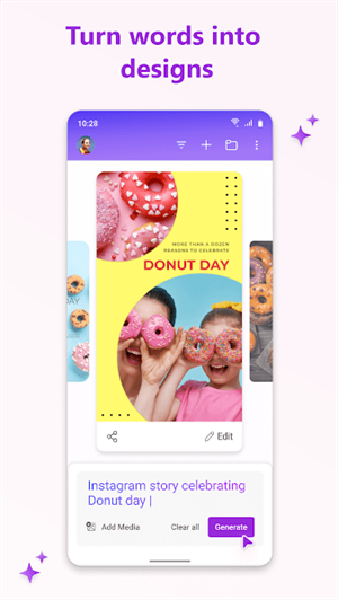designer融合了最新人工智能技术,帮助创作者轻松完成多种设计任务,多种设计服务绝对能够让感到满意,创作者可以轻松地将他们的设计一键发布到各种社交媒体平台,从而与朋友、粉丝和关注者分享自己的创作,更广泛地传播的创意作品。