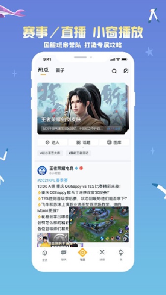 3、可随时了解官方最新资讯、看直播、找攻略、参与活动,发现王者的更多新鲜事。