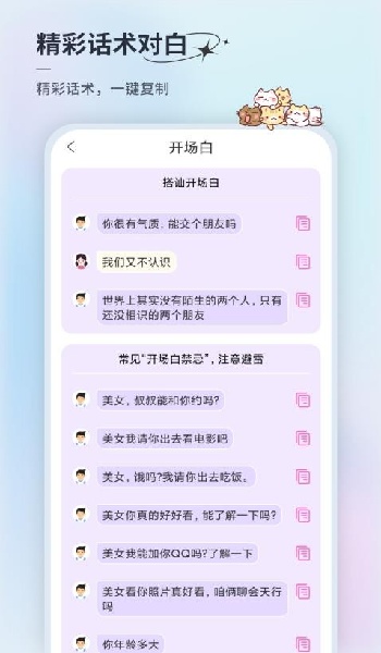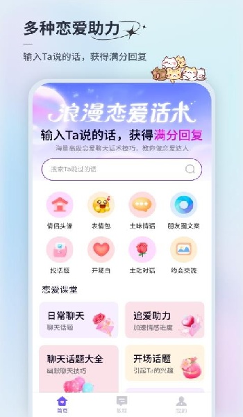 2、使用者可通过在这款软件上学习各样聊天话术、情话等,以此提高自己的情商。