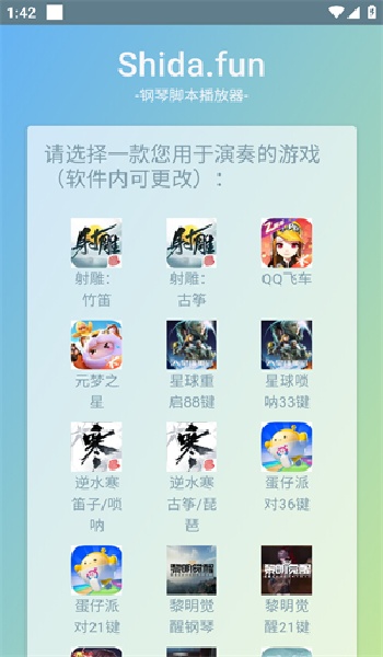 3、非常简单,只需要下载并安装之后选择要玩的游戏即可开始辅助的弹琴模式。