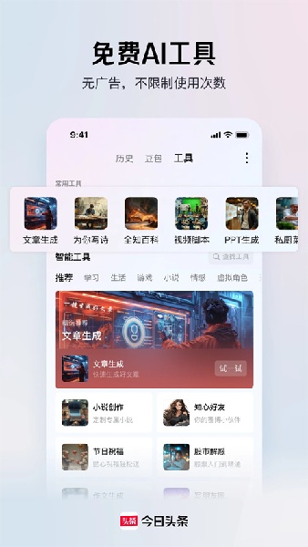 今日头条新闻提供新闻、小说以及视频等多种资源,软件提供超多安全保障,让读者每一次搜索习惯都受到了服务器的全程加密,不会泄露搜索观看记录,所有的新闻的资讯内容,点击就能直接阅读,没有任何的限制。
