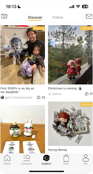 1、搭建艺术玩具爱好者交流平台,消费者可分享收藏、展示隐藏款玩偶。