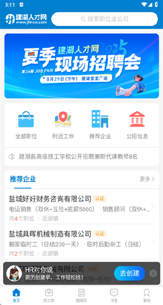 建湖人才网提供人才招聘服务,提供了更多不同的岗位资源,这样可以提供更多职位以便进行求职,让求职者根据不同求职需求获取心仪的岗位,不同的岗位可以进行一键筛选,能够完善自己的简历信息进行投递,这样能够自动发送简历信息。