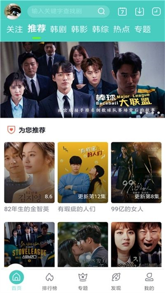 老虎影视app追剧最新版是一款1080P高清视频播放的影视软件。每日都会大量更新或上线全新的影视剧资源,观众能够尽快的体验观看全新影视剧题材内容。这里涵盖了丰富的影视分类资源,如电视剧、电影、综艺节目、动漫等,各种视频分类作品全都可免费下载观看。首页推荐的影视类作品有82年生的金智英、有瑕疵的人们、99亿的女人等,海量精品首页推荐的影视作品每周都会刷新。