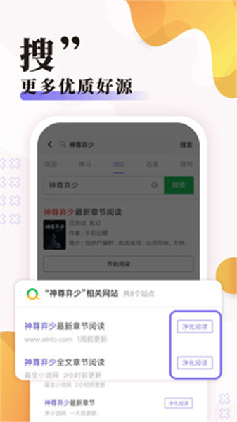 2、软件里面内置了非常多的小说网站,你们是可以在全网快速搜索喜欢小说所有的资源。