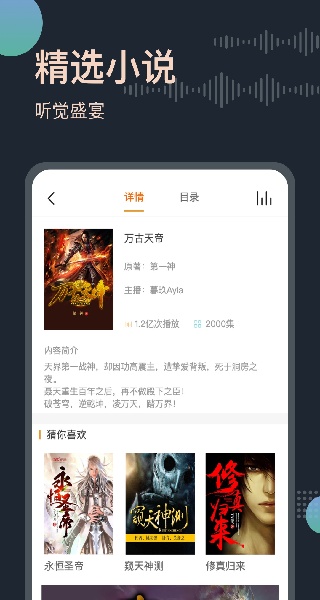 1、专业编辑精挑细选百万本图书资源,网路小说一网打尽,随时都可以收听到自己喜欢小说。